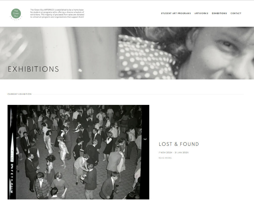 pages to highlight current and past exhibitions, with organized tabs showcasing individual images from the exhibition and installation views of the gallery.